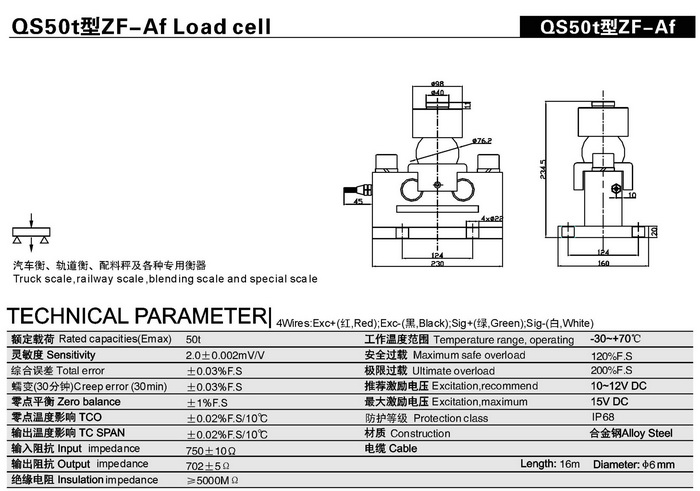 產(chǎn)品名稱:橋式QS50t型ZF-Af稱重傳感器