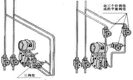 2、防止差壓變送器的正負(fù)、壓室過壓請按下圖所示方法與引壓管路連接。