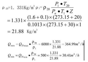 ①在渦街流量計產(chǎn)品選型樣本中,所指流量為工況下實際流量,在選型時須將標(biāo)況下流量換算成工況下流量。