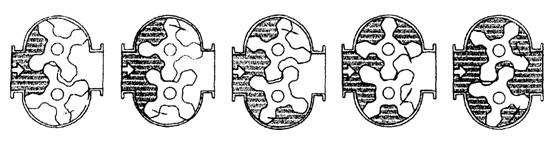 ZW-LXZ系列螺旋雙轉(zhuǎn)子流量計(jì)對(duì)流體流量的測(cè)定是在計(jì)量腔體內(nèi)完成的。一對(duì)螺旋轉(zhuǎn)子在液體的壓力下轉(zhuǎn)動(dòng),轉(zhuǎn)子與計(jì)量腔壁間形成的封閉空間(圖陰影部分)每回轉(zhuǎn)一次排出8倍陰影體積。因此根據(jù)這一關(guān)系,只要計(jì)量轉(zhuǎn)子回轉(zhuǎn)的次數(shù),即可計(jì)算出流量累積量,根據(jù)每秒的轉(zhuǎn)數(shù),即可測(cè)出瞬時(shí)流量。